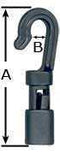 This hook will fit a 1\4" bungee cord with no tools required! "A" measurement is 21/4" (57mm) and "B" measurement is 9/32" (7.14mm).